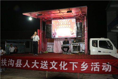 8月29日晚,扶溝縣人大“歡樂中原·文明扶溝”文化扶貧流動舞臺走進包屯鎮(zhèn)譚崗村,為村民送來了一道激發(fā)脫貧斗志的精彩文化“大餐”??h人大副主任魏軍占、姚扶延、陳建華和縣委宣傳部、包屯鎮(zhèn)黨委政府相關(guān)領(lǐng)導(dǎo),和譚崗村干群共同觀賞了形式多樣的演出節(jié)目。