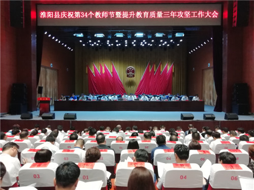 9月3日,在第34個教師節(jié)來臨之際,淮陽縣慶祝第34個教師節(jié)暨提升教育質(zhì)量三年攻堅工作大會召開。會議主要目的是總結(jié)一年來教育工作取得的成績,對教育戰(zhàn)線涌現(xiàn)出的“優(yōu)秀校長”“師德標(biāo)兵”“優(yōu)秀班主任”“優(yōu)秀教師”進行表彰,并對全縣提升教育質(zhì)量三年攻堅工作進行全面動員部署。