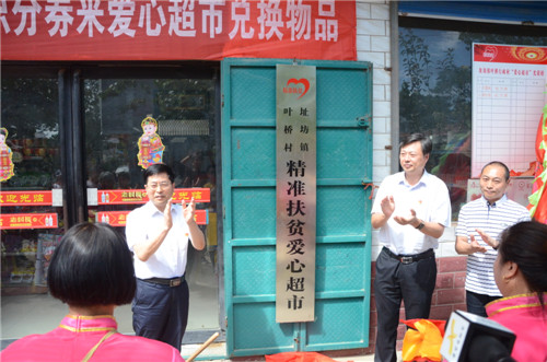 9月7日,址坊鎮(zhèn)葉橋行政村舉行了愛心超市揭牌儀式,縣委常委、常務(wù)副縣長王獻超、縣審計局局長劉可為愛心超市揭牌,址坊鎮(zhèn)鎮(zhèn)長潘厚君、駐村第一書記吳莉、愛心企業(yè)家方凱及葉橋全體村干部、部分村民代表出席儀式。