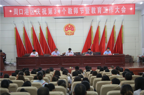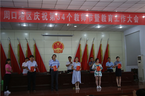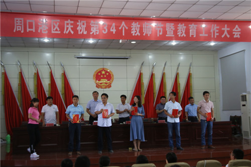 港區(qū)黨委委員張東立代表港區(qū)黨委、管委會(huì)向港區(qū)全體教育工作者、離退休教師致以節(jié)日的問候致。張東立說,周口港區(qū)自成立以來,每年都舉行隆重的教師節(jié)慶祝表彰大會(huì),大張旗鼓表彰一大批優(yōu)秀教師、優(yōu)秀校長、先進(jìn)教育工作者等教師楷模,在全區(qū)營造了尊師重教的濃厚氛圍。近年來,全區(qū)總體辦學(xué)條件明顯改善,各級教育協(xié)調(diào)發(fā)展,教育環(huán)境明顯優(yōu)化,教師隊(duì)伍建設(shè)明顯加強(qiáng),教育質(zhì)量明顯提高,群眾滿意度明顯提升。