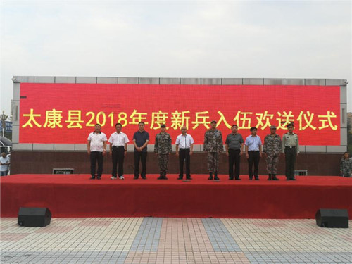在人民廣場舉行2018年新兵入伍歡送儀式上,縣委常委、副縣長張保華代表縣委、縣政府向新征入伍的青年們表示熱烈的祝賀!向積極送子參軍、支持國防事業(yè)的青年家屬表示崇高的敬意!他說,每個(gè)人都有英雄夢、軍營夢,今天太康的熱血男兒投身軍營,傳承紅色基因,踏上熱血征程,在大家的身上看到了太康優(yōu)秀青年的風(fēng)采,看到了青春飛揚(yáng)的激情,也看到了對(duì)國、對(duì)家的赤膽忠誠。希望新兵同志胸懷大志,用習(xí)近平強(qiáng)軍思想武裝頭腦,認(rèn)真踐行“忠誠于黨、熱愛人民、報(bào)效國家、獻(xiàn)身使命、崇尚榮譽(yù)”的當(dāng)代革命軍人核心價(jià)值觀,珍惜榮譽(yù),服從指揮,勤學(xué)苦練,磨礪意志,堅(jiān)決做到聽黨指揮、能打勝仗、作風(fēng)優(yōu)良,以過硬的本領(lǐng)、良好的表現(xiàn)、優(yōu)異的成績?yōu)樘禒幑?,為?shí)現(xiàn)中國夢強(qiáng)軍夢做出應(yīng)盡貢獻(xiàn)。