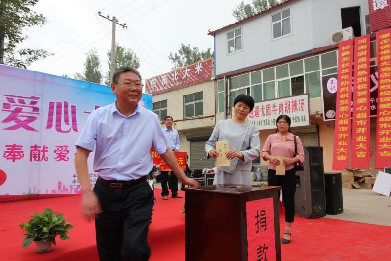 儀式上,譚莊鎮(zhèn)鎮(zhèn)長喻永安宣讀了《愛心超市募捐倡議書》。