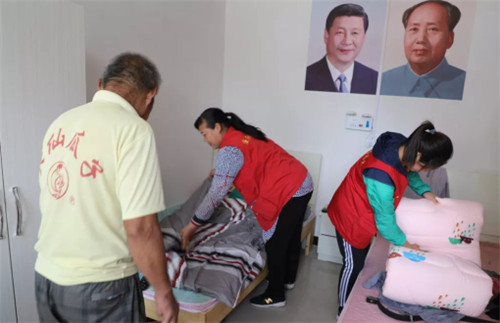 當天,志愿者服務(wù)隊員們走進敬老院,噓寒問暖,像對待自己的親人一樣對待每一位老人。有的幫老人打掃室內(nèi)衛(wèi)生,為他們鋪床疊被。心細的姑娘掏出自己的梳子給老人梳頭發(fā)后,又剪指甲,讓老人高興得合不攏嘴。
