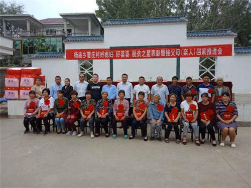 會上,陶云峰宣讀了《楊廟鄉(xiāng)人民政府關(guān)于表彰曹莊行政村“好媳婦、好婆婆、脫貧之星”的決定》,并對評選出來的辛晨晨等5名“好媳婦”、靳秀榮等5名“好婆婆”、李剛領(lǐng)等5名“脫貧之星”分別進(jìn)行了隆重表彰,為他們戴上了大紅花,發(fā)放了駐村幫扶單位提供的精美太空被、楊廟鄉(xiāng)巾幗女協(xié)提供的電飯鍋等獎品。