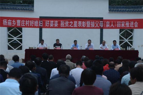 為助力脫貧攻堅(jiān),9月14日,楊廟鄉(xiāng)曹莊行政村召開“好媳婦、好婆婆、脫貧之星”表彰暨接父母(親人)回家推進(jìn)會。太康縣委巡察辦主任劉永新、太康縣人民銀行副行長王建華、太康縣楊廟鄉(xiāng)黨委書記許兵軾、太康縣楊廟鄉(xiāng)黨委副書記陶云峰、太康縣委巡察辦副科級干部李陸軍等參加了會議。會議由楊廟鄉(xiāng)人大主席陳俊洪主持。