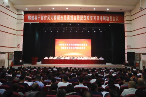 10月7日上午,鄲城縣干部作風(fēng)大整頓第四次查處通報大會暨脫貧攻堅“百日沖刺”動員會召開。會議貫徹落實全省脫貧攻堅電視電話會議和脫貧退出培訓(xùn)會議精神,聚焦脫貧摘帽目標(biāo)任務(wù)和作風(fēng)問題,分析當(dāng)前形勢,進一步動員全縣上下統(tǒng)一思想、提振精神,強化責(zé)任、盡銳出戰(zhàn),向脫貧摘帽發(fā)起總攻??h委書記羅文閣出席會議并講話,縣長李全林主持會議??h領(lǐng)導(dǎo)崔衛(wèi)國、李建軍、姜永來、侯磊、吳青鋒、王智華、呂振龍、馬超、胡友濤、崔衛(wèi)華、劉輝等參加會議。