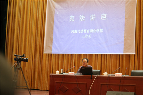 會上,省司法警官職業(yè)學(xué)院法律系主任王治荃、法學(xué)碩士孫啟河兩位教授分別從憲法的時代背景、基本內(nèi)涵、精神實質(zhì)和重要意義及依法行政的基本含義、本質(zhì)和全面推進(jìn)依法行政的奮斗目標(biāo)等做了精彩輔導(dǎo)。