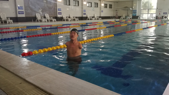 在交談中記者了解到,島建書在5歲時觸高壓線造成雙臂截肢?!?2歲那年,我在電視上看別人游泳,覺得別人能做到的我也能做到,從那時起我就決定學(xué)習(xí)游泳?!睄u建書說,當(dāng)時沒有條件,他就在河里自學(xué),期間還兩次溺水,所幸被人救起。