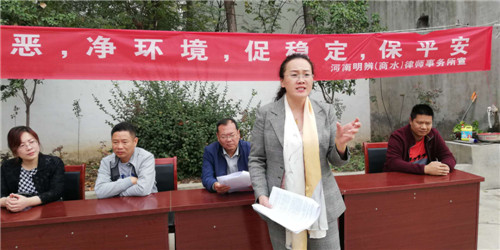 10月21日上午,商水縣法院駐城關(guān)鄉(xiāng)柴堂村工作隊、縣司法局和河南明辯律師事務所到基層集中開展掃黑除惡法律宣傳和咨詢活動。