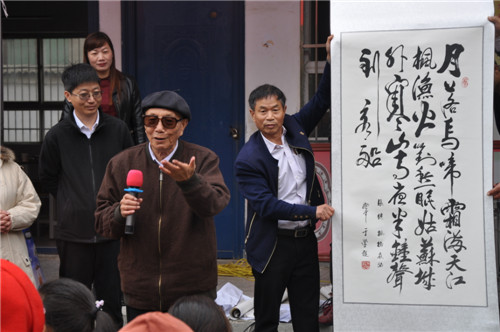 5年級的學生小宇飛高興地說:“謝謝于爺爺看望我們,這次除了新書包,我們還看到了書法作品,今后我也要好好練習毛筆字,長大也當一名書法家。”