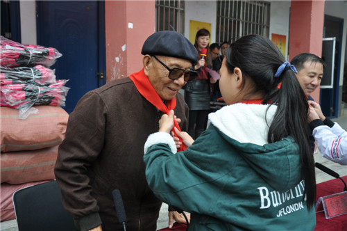 瑟瑟寒風抵擋不住火熱愛心,毛毛細雨阻擋不了赤子情懷。愛心助學現(xiàn)場,于學龍不顧高齡,除了給孩子們送去愛心禮物之外,還站在雨中分享了自己的成長經(jīng)歷,教育孩子們要學會刻苦、學會拼搏,還要懂得感恩和奉獻。