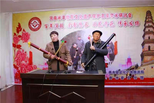 研討會上,省級非遺漁鼓道情唯一傳承者杜三合和弟子趙春進行了現(xiàn)場表演。