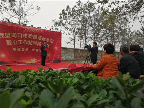 閆冬梅在慰問演出致辭中說,民盟周口市委領(lǐng)導親臨黃寨開展慰問活動,既體現(xiàn)了民盟周口市委對商水縣工作的大力支持,又展現(xiàn)了民盟會員主動承擔社會責任、熱愛社會公益的良好形象,為商水縣全面打好打贏脫貧攻堅戰(zhàn)提供了有力支撐?!胺瞰I愛 心、關(guān)愛老人是周口民盟義不容辭的責任和義務(wù),讓老年人能夠老有所養(yǎng)、老有所樂一直是民盟周口市委幫扶的重要內(nèi)容,今后民盟周口市委將繼續(xù)發(fā)揚優(yōu)良傳統(tǒng),一如既往地支持黃寨敬老院工作,讓老年人的生活水平不斷提高。