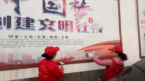 “我們有的是雙手,就算小廣告再多,也得把他們‘消滅’干凈?!敝驹刚邔O存梅一邊用鏟刀清理墻上的小廣告,一邊幽默地說,“大冬天,全當(dāng)活動(dòng)活動(dòng)筋骨?!?/p>