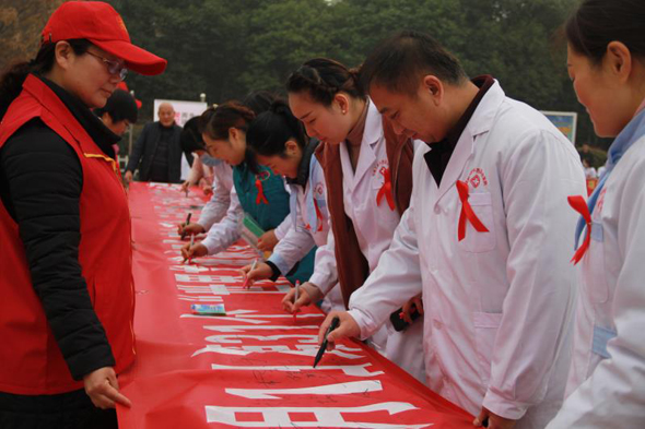 11月30日上午,由項城市衛(wèi)生計生委組織,來自項城市疾控中心、市第一人民醫(yī)院、市中醫(yī)院、市婦幼保健院及市內(nèi)的其它十余家醫(yī)療機構(gòu),共同在該市人民公園舉行第31個“主動檢測,知艾防艾,共享健康”的“世界艾滋病日”主題宣傳活動。活動現(xiàn)場,醫(yī)護人員共向群眾發(fā)放宣傳資料1800余冊(種),接受230多人次的咨詢服務(wù),大力宣傳倡導(dǎo)建立文明健康的生活方式,并希望大家都能正視艾滋、關(guān)注艾滋、預(yù)防艾滋。