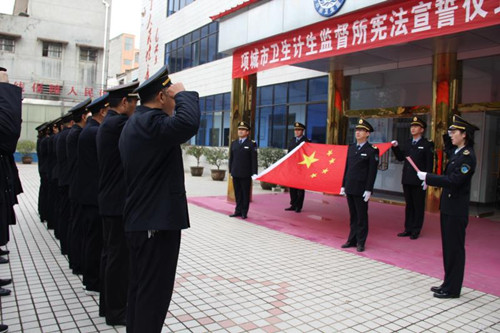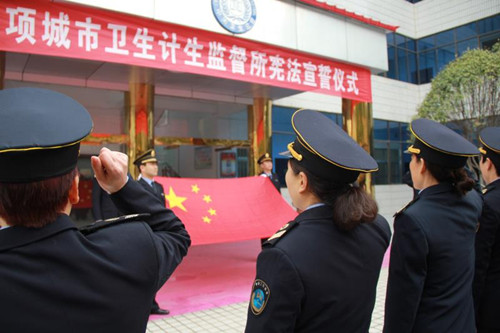 12月4日在我國(guó)第五個(gè)國(guó)家憲法日來(lái)臨之際,項(xiàng)城市衛(wèi)生計(jì)生監(jiān)督所舉行憲法宣誓儀式,旨在引導(dǎo)全體衛(wèi)生計(jì)生監(jiān)督人員牢固樹(shù)立憲法至上意識(shí),增強(qiáng)憲法觀念,自覺(jué)維護(hù)憲法尊嚴(yán)。