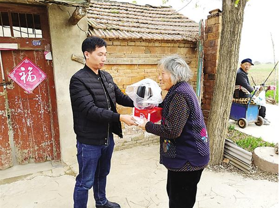 縣規(guī)劃辦馬鵬輝為鄧城鎮(zhèn)許村一貧困戶送去溫暖。 (莊正富 攝)