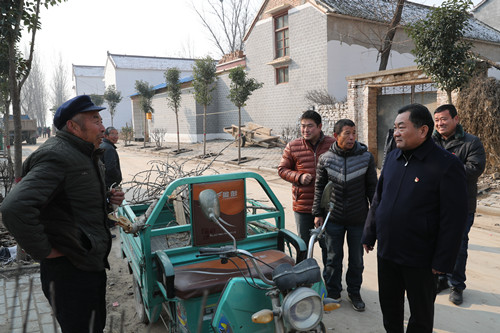 12月14日,是幫扶日。太康縣委書記王國璽來到聯(lián)系點(diǎn)獨(dú)塘鄉(xiāng)白龍王村走訪幫扶。王國璽強(qiáng)調(diào),貧困戶退出要嚴(yán)格標(biāo)準(zhǔn),嚴(yán)格程序,杜絕漏評錯退??h委辦公室、縣農(nóng)牧局、住建局等相關(guān)負(fù)責(zé)人陪同。