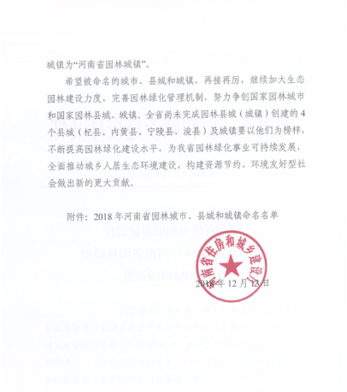 12月17日,記者從太康縣住房和城鄉(xiāng)建設(shè)局獲悉:河南省住房和城鄉(xiāng)建設(shè)廳辦公室日前專(zhuān)門(mén)下發(fā)文件,公布了河南省園林城市、縣城和城鎮(zhèn)擬命名名單。太康縣和西華縣成功入選2018年河南省園林縣城。