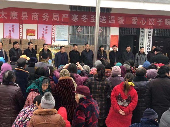 12月21日下午,冬至前夕,太康縣副縣長喬偉、縣商務(wù)局局長李曉紅,清集鎮(zhèn)黨委書記吳文靜,帶著對(duì)貧困群眾的關(guān)心、關(guān)愛,到太康縣清集鎮(zhèn)張子影行政村、桂崗行政村開展嚴(yán)寒冬至送溫暖,愛心餃子暖人心扶貧慰問活動(dòng)。
