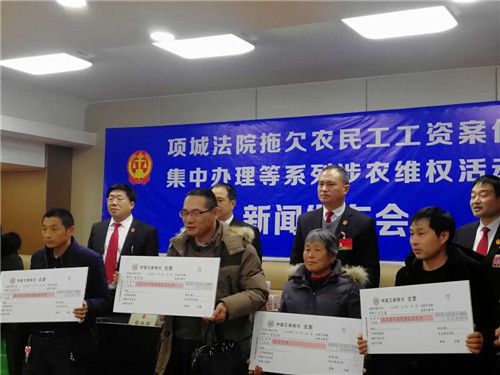 “感謝項城法院的領導,他們一心為民,克服種種困難,幫助我們要回了血汗錢?!?2月24日,項城法院拖欠農(nóng)民工工資案件集中辦理等系列涉農(nóng)維權活動新聞發(fā)布會在該院召開,16名涉農(nóng)維權案件當事人從項城法院黨組成員、院長張永波的手中接過索要許久的血汗錢,喜極而泣。