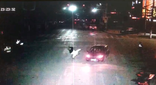 當(dāng)晚23時(shí)23分,這輛車號(hào)為P733B1的黑色東風(fēng)風(fēng)行SUV汽車出現(xiàn)在路口。在強(qiáng)行闖過(guò)民警設(shè)立的卡點(diǎn)時(shí)后,又試圖左拐向文化路方向逃離,在路口西北角執(zhí)勤的路查四中隊(duì)協(xié)警石巖快速上前攔截。孰料,該車不但未停,反而加速向前沖,石巖躲閃不及被撞到該車擋風(fēng)玻璃后又被撞出數(shù)米遠(yuǎn),重重地摔在馬路上。