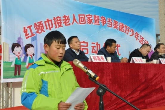 12月29日下午,在商水縣姚集鎮(zhèn)舉行的“紅領(lǐng)巾接老人回家暨爭(zhēng)當(dāng)美德好少年”活動(dòng) 啟動(dòng)儀式上,姚集鎮(zhèn)盧廟小學(xué)六年級(jí)學(xué)生張吉慶用幼稚童音朗誦的《用愛接爺爺奶奶 回家》,感動(dòng)了在場(chǎng)的來自各鄉(xiāng)鎮(zhèn)的數(shù)百名鄉(xiāng)村干部?!昂⒆又v的好,我們一定配合 鄉(xiāng)政府把獨(dú)居老人戶清零工作做好做實(shí),讓老人們年年過暖冬?!睖f鄉(xiāng)中心校長戚 二中會(huì)后告訴記者。
