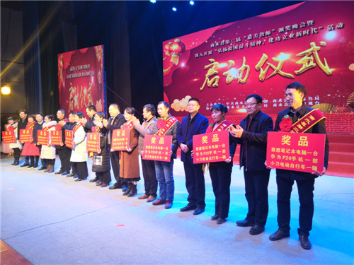 到場(chǎng)領(lǐng)導(dǎo)為十位最美教師頒發(fā)手機(jī)、筆記本電腦、電動(dòng)車(chē)等獎(jiǎng)品,與他們合影留念。