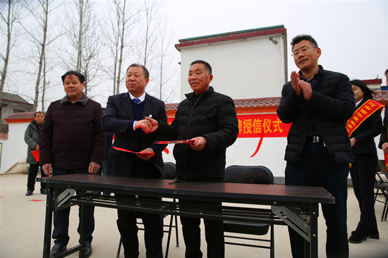 崗趙村是周口市行政服務(wù)中心幫扶的貧困村。去年11月份,駐村第一書記李文杰得知西華廈農(nóng)商村鎮(zhèn)銀行已開始在村一級(jí)評(píng)定設(shè)立“鄉(xiāng)村振興示范點(diǎn)”,立即與該行負(fù)責(zé)人取得聯(lián)系、積極溝通。銀行方面經(jīng)過(guò)認(rèn)真考察,最終確定在崗趙“設(shè)點(diǎn)”。25日在崗趙村部舉行的授牌授信儀式上,西華縣人民銀行有關(guān)負(fù)責(zé)人為崗趙村授予“鄉(xiāng)村振興示范點(diǎn)”牌匾,西華廈農(nóng)商村鎮(zhèn)銀行負(fù)責(zé)人與崗趙村負(fù)責(zé)人簽訂了授信協(xié)議書。周口市行政服務(wù)中心和葉埠口鄉(xiāng)政府負(fù)責(zé)人都熱情致辭,百余名村民代表見證了這一激動(dòng)人心的時(shí)刻。準(zhǔn)備做早餐生意的村民趙合成說(shuō):“咱農(nóng)民貸款也不用再跑冤枉路、花冤枉錢,這個(gè)‘點(diǎn)’設(shè)得真中!”