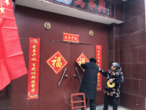 據(jù)了解,當天下午時莊村黨支部訂制的3000多套春聯(lián),免費贈給448戶村民。記者看到,這些春聯(lián)的內(nèi)容都是承載著黨和政府的關(guān)懷,有的是歌頌改革開放的,有的是幸福報黨恩的。該村村民朱在靈領(lǐng)到春聯(lián)后立刻把春聯(lián)拿回家,他將門頭擦干凈后把春聯(lián)貼了上去。在門口懸掛著的國旗的襯托下,顯得格外喜慶。“村里免費發(fā)這種帶黨徽的春聯(lián)已經(jīng)第三年了,這種春聯(lián)傳遞了黨的好聲音,推動了群眾對黨的擁護,現(xiàn)在村民的精神面貌也貌煥然一新?!敝煸陟`高興地說。