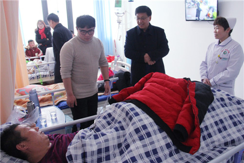 張東立首先來到創(chuàng)傷外科和燒傷科病房,了解患者的治療、康復(fù)、生活以及春節(jié)打算等情況,詳細(xì)詢問患者醫(yī)護(hù)人員服務(wù)是否周到,是否進(jìn)行了安全教育。45歲的創(chuàng)傷患者尹翠麗說:“港區(qū)醫(yī)院醫(yī)護(hù)人員醫(yī)技精湛、服務(wù)周到,待我們像親人一樣。”張東立叮囑各位患者,一定要安心養(yǎng)傷,爭取早日康復(fù),同時祝大家過一個愉快祥和的春節(jié)。