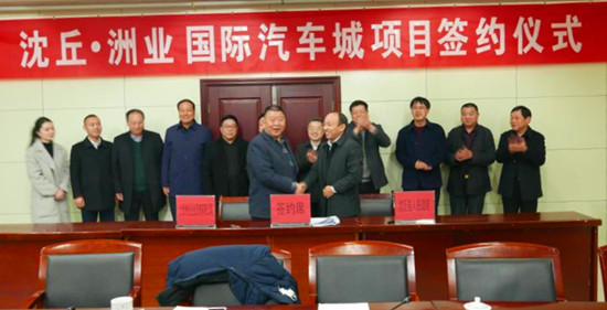 2月26日,沈丘洲業(yè)國際汽車城項(xiàng)目簽約儀式在錦華大酒店舉行。沈丘縣委書記皇甫立新,縣長劉國慶,縣委常委、常務(wù)副縣長郝四春,副縣長呂孝坤,副處級干部張曉,上海洲業(yè)企業(yè)管理有限公司董事長李海波,總裁李榮輝等出席簽約儀式,縣直相關(guān)職能部門負(fù)責(zé)人參加了簽約儀式。