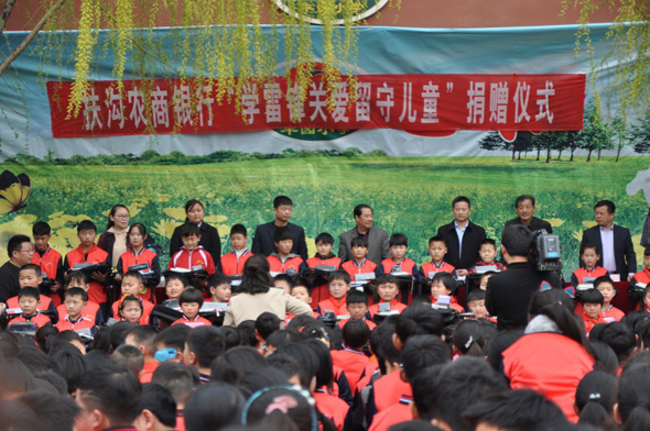 傳承雷鋒精神,關(guān)愛留守兒童。3月19日,扶溝縣農(nóng)商銀行在豐園小學舉行“學雷鋒·關(guān)愛留守兒童”捐贈儀式。拿著書包、文具盒、精品兒童叢書,孩子們臉上笑魘如花。