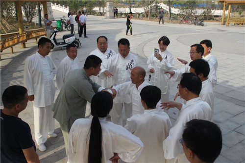 在李廣的示范帶動下,縣財政局先后又有10多人加入其中,形成了一個龐大的太極拳義務(wù)傳授團(tuán)隊。幾年來,李廣團(tuán)隊每天早晚堅持頭頂著晨曦、沐浴著夕陽,義務(wù)傳授太極拳,弘揚傳播老子文化,乘借著鹿邑既定的“產(chǎn)業(yè)興城、文化立縣”發(fā)展戰(zhàn)略東風(fēng),持續(xù)為唱響“老子故里、道家之源、道教祖庭、李姓之根”四大文化品牌添磚加瓦、吶喊助威。