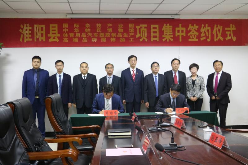 本次會議共簽約四個(gè)項(xiàng)目,總投資約17.5億元。分別是:河南龍都文化娛樂有限公司投資5.1億元的國際產(chǎn)業(yè)園項(xiàng)目。翰高兄弟(北京)投資集團(tuán)投資10億元的中華姓氏博物館項(xiàng)目。東莞啟昊服飾有限公司投資1.2億元的高檔服飾加工項(xiàng)目;溫州奕銘新材料股份有限公司投資1.2億元的體育及汽車用品項(xiàng)目。