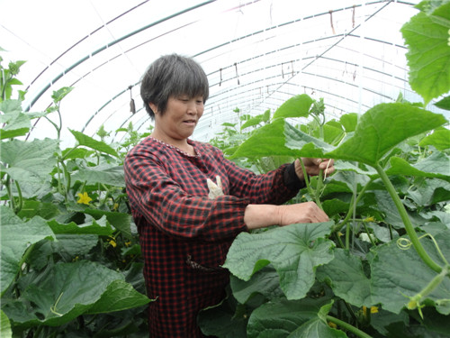 4月24日,沈丘縣周營(yíng)鎮(zhèn)趙莊村生態(tài)蔬菜大棚基地里,綠油油的吊蔓黃瓜長(zhǎng)勢(shì)喜人,少量已采摘上市。忙碌著的菜農(nóng)王翠霞告訴記者:“俺今年種了20畝地的大棚黃瓜,從種子肥料,到用水用藥,都有講究,要按標(biāo)準(zhǔn)化生產(chǎn),這樣種出來(lái)的黃瓜品質(zhì)好,客商搶著要。一畝地大棚瓜果蔬菜的年收入超過(guò)1.5萬(wàn)元。”