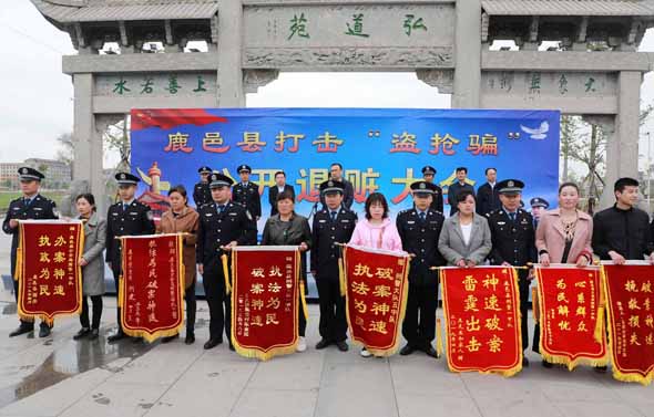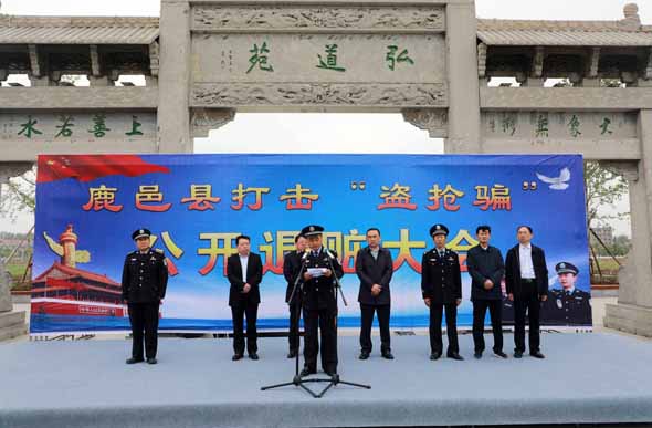 4月25日上午,鹿邑縣召開打擊“盜搶騙”專項(xiàng)行動公開退贓大會??h委常委、政法委書記侯自峰出席會議并講話??h公、檢、法、司等有關(guān)部門負(fù)責(zé)人與群眾代表近300人參加退贓大會。