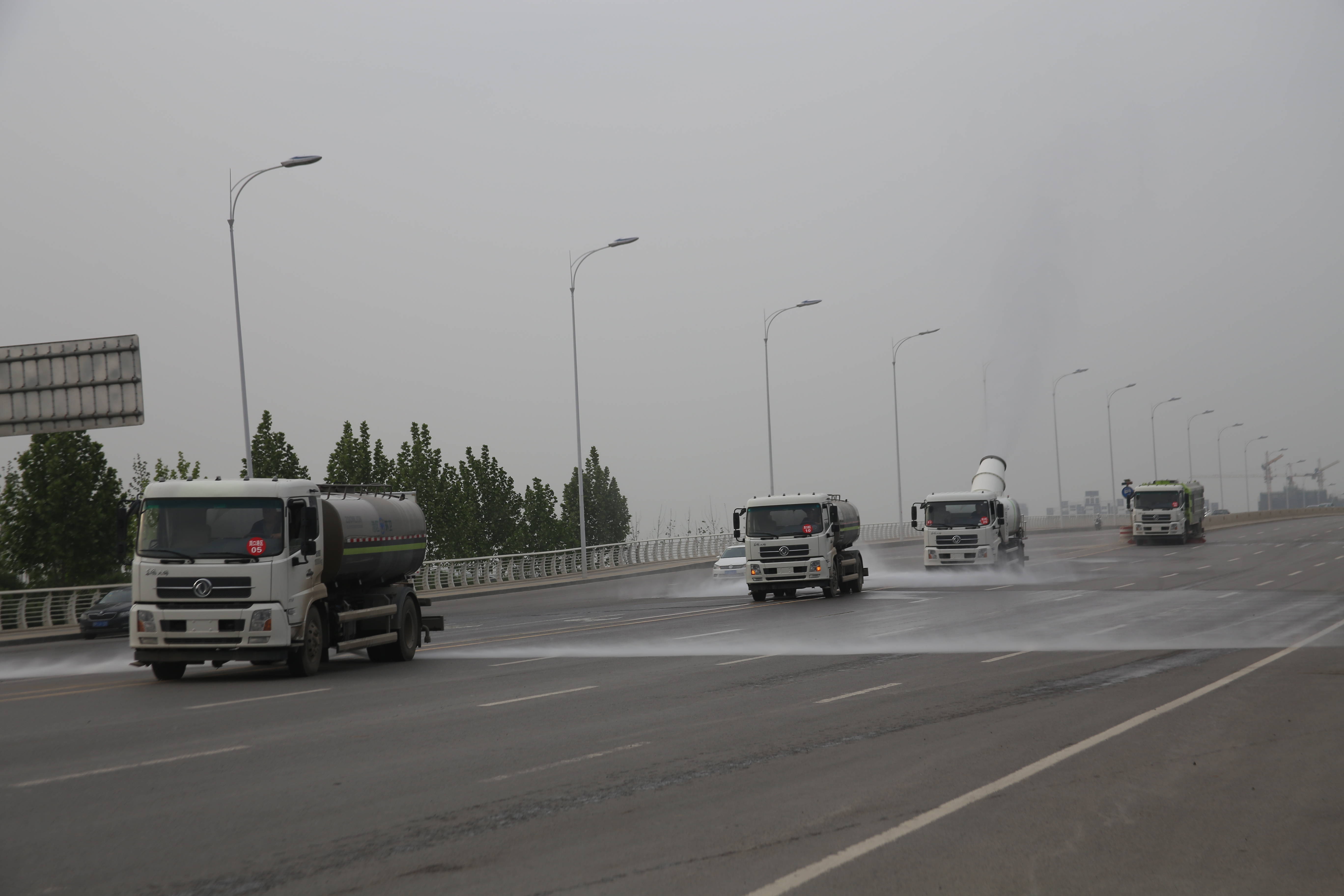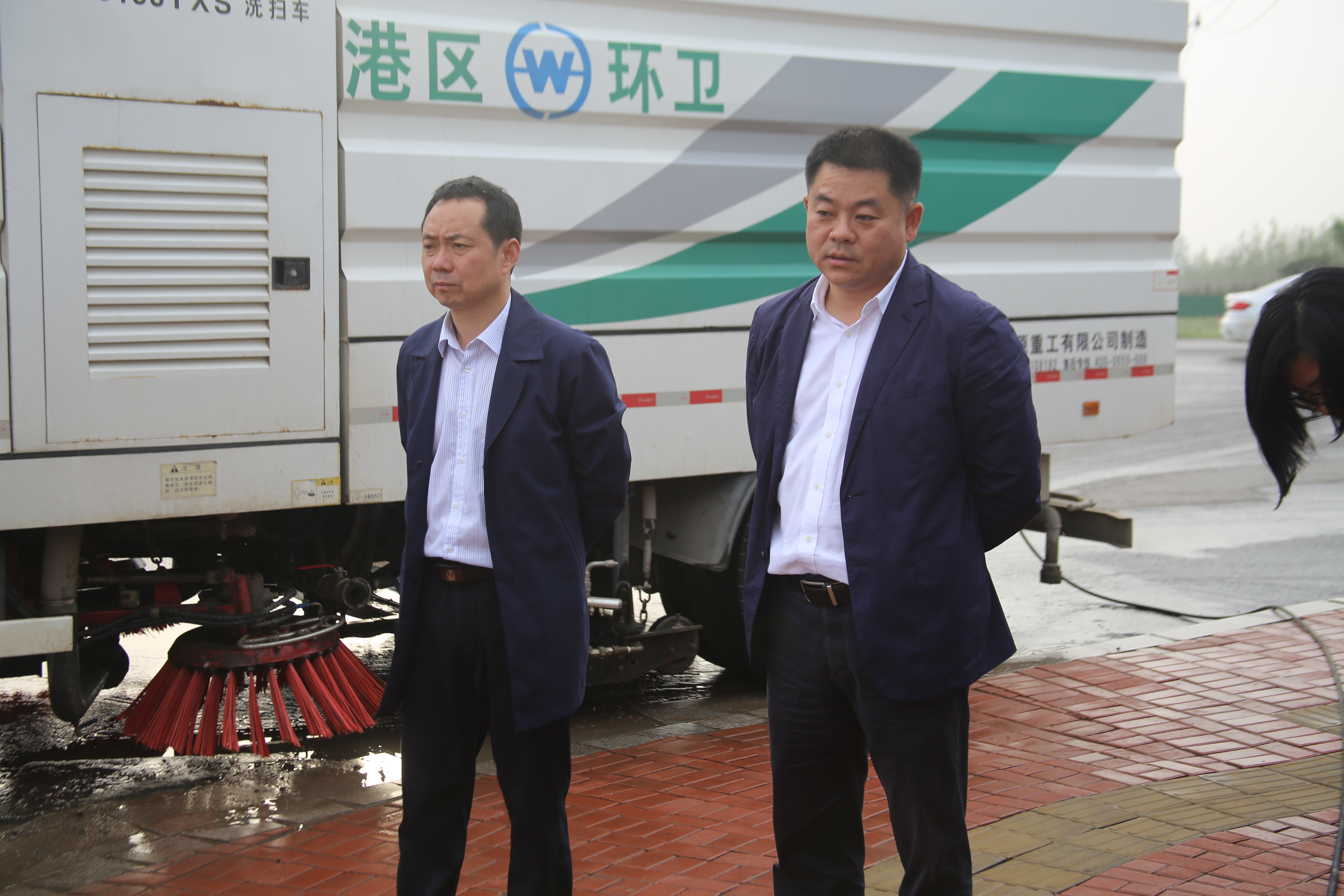 在武盛大道與周項路交叉口,孫紅偉一行觀看了港區(qū)道路保潔“六步聯(lián)合作業(yè)法”工作過程。作業(yè)現(xiàn)場,兩輛洗掃車打頭陣,先將路面清洗一遍;霧炮車緊隨其后,噴射水霧抑制揚塵;再由環(huán)衛(wèi)工人,通過高壓噴水設(shè)備,對路面、道牙進行沖刷,所到之處一塵不染。隨后,通過人工保潔、高頻灑水、高質(zhì)清掃,保持路面干凈整潔。