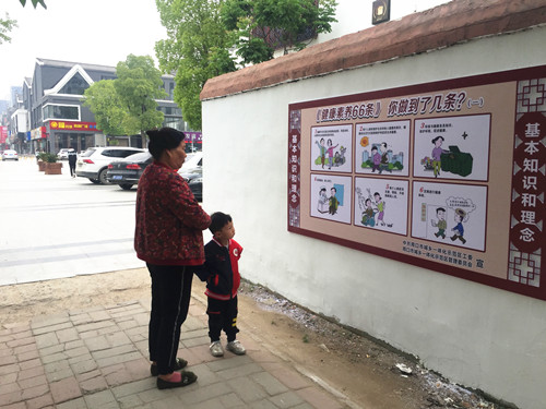 “文化墻既美化了環(huán)境,又能給我們老年人提供一些養(yǎng)生的建議,領(lǐng)導(dǎo)的想法好嘞很著呢!”家住馨麗康城63歲的趙姓居民在文化墻前由衷地發(fā)出了感慨,“大街上的宣傳標(biāo)語(yǔ),商店電子屏上的標(biāo)語(yǔ),街道上不停地清掃灑水,學(xué)校給學(xué)生發(fā)的宣傳手冊(cè),現(xiàn)在,大人小孩都知道創(chuàng)建衛(wèi)生城市了,環(huán)保意識(shí)也增強(qiáng)了,我的小孫子吃完的果凍盒,不見垃圾桶就一直拿在手里舍不得扔了?!?/p>