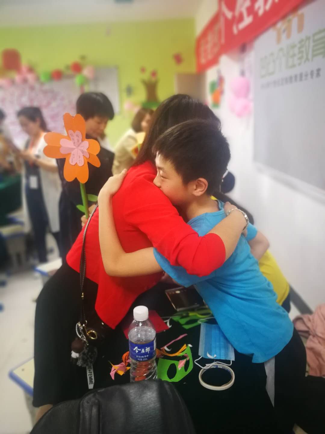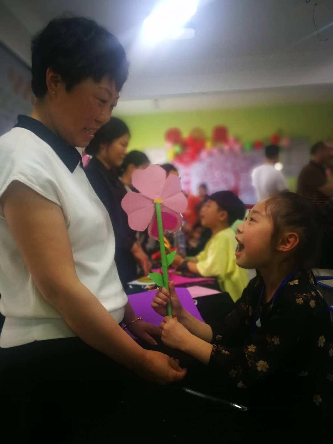 活動上,在專業(yè)手工教師的指導(dǎo)以及媽媽的配合下,這些小記者自己動手利用剪刀、雙面膠、彩紙等學(xué)習(xí)制做康乃馨紙花。五層紅色的花瓣、兩片綠葉、一根花枝,經(jīng)過近一個小時的反復(fù)實踐,一朵朵紙花陸續(xù)制好,成功的喜悅映紅了孩子們的笑臉。在祝??ㄆ蠈懴聦寢尩淖8UZ后,孩子們手捧用彩紙包裝好的紙花,拿著祝福卡送到母親手中,和媽媽熱情擁抱、向媽媽表達(dá)愛的祝福。