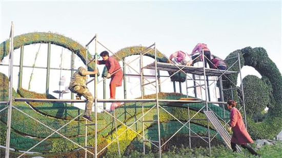 5月21日6時(shí)許,周口市中心城區(qū)文昌大道與周口大道交叉口東側(cè)的街頭游園內(nèi),工人們用花草布置景觀造型。據(jù)悉,5月20日下午,我市召開創(chuàng)建國家衛(wèi)生城市攻堅(jiān)戰(zhàn)誓師大會(huì)。會(huì)議要求,集中全力,克難攻堅(jiān),利用最后十多天時(shí)間,做好迎接省“創(chuàng)衛(wèi)”暗訪組檢查的全部準(zhǔn)備,堅(jiān)決拿下“創(chuàng)衛(wèi)”資格和路條。記者 關(guān)秋麗 攝