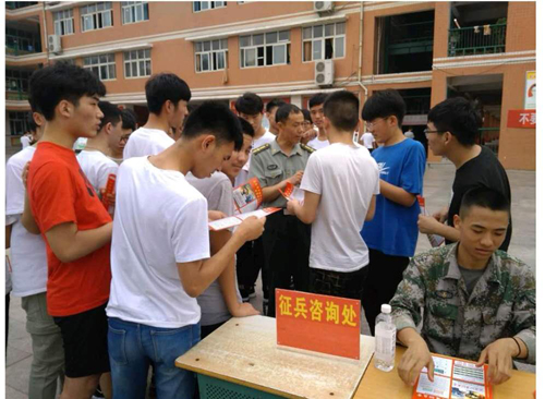5月25日,淮陽縣征兵政策宣講團進校入班,對全縣六所高中學(xué)校開展宣講活動。效果明顯,當(dāng)場有參軍意向高學(xué)歷青年報名,人數(shù)成倍增長,周口軍分區(qū)副司令員薛振喜看到這一喜人的成果后說:“大學(xué)生征兵政策宣傳進村入戶進校園入班級這個做法好?!?/p>