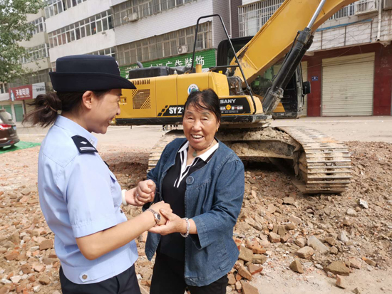 “創(chuàng)衛(wèi)不留死角,想盡辦法也要給市民良好的出行體驗(yàn)?!笔泄簿终匍_黨委會(huì)議專題研究建新路西段附近居民出行問題,發(fā)出“克服困難、自掏腰包、推倒違建、平整道路”的指令,號(hào)召全警幫助居民實(shí)現(xiàn)安全出行?!斑@些民警、社區(qū)干部都跟我的孩子差不多大,看著他們頂著大太陽清理雜物,夜里還在加班加點(diǎn)工作,我給他們說‘孩子來家喝口水,吃個(gè)飯’他們都笑著拒絕了。真感謝他們,也心疼他們?!闭f起“創(chuàng)衛(wèi)”以來,市公安局民警和社區(qū)干部的工作,70多歲的智老太眼含熱淚。