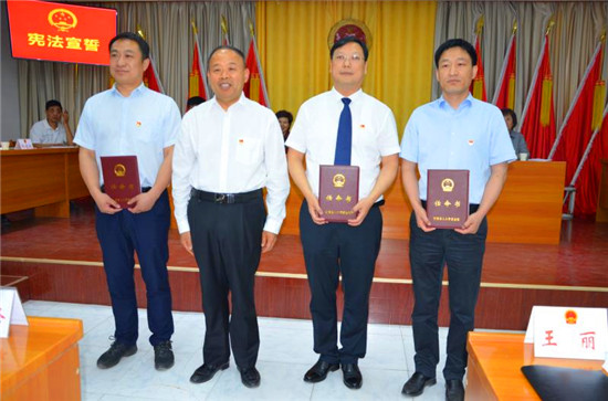 會議書面學(xué)習了栗戰(zhàn)書委員長在全國人大常委會水污染防治法執(zhí)法檢查組第一次全體會議上的講話,聽取審議了太康縣人大常委會執(zhí)法檢查組關(guān)于檢查水污染防治“一法一條例”貫徹實施情況的報告,聽取審議了縣城市管理局、縣農(nóng)業(yè)農(nóng)村局、縣文化廣電和旅游局、縣應(yīng)急管理局主要負責人述職報告并進行滿意度測評。會議根據(jù)縣人民政府的提請,依法免去卜迎濤、張國慶兩位同志的太康縣人民政府副縣長職務(wù),任命耿黨恩、李煒、孟濤三位同志為太康縣人民政府副縣長,被任命的同志進行了憲法宣誓,張思民為被任命同志頒發(fā)了任命書。