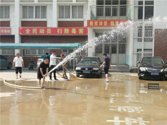 雖然天氣炎熱,大家汗流浹背,卻熱情高漲,積極性很高,大家紛紛拿起掃帚、抹布,提上水桶,充分發(fā)揚(yáng)不怕臟、不怕累的精神,對(duì)院內(nèi)道路、車棚、宣傳欄、綠化帶等處進(jìn)行沖洗、清掃,同時(shí)對(duì)各樓層門窗玻璃、消防栓、廁所等進(jìn)行集中清理……經(jīng)過兩個(gè)多小時(shí)的辛勤勞動(dòng),各辦公室窗明幾凈,廁所衛(wèi)生干凈整潔,車棚車輛擺放整齊,院內(nèi)環(huán)境煥然一新。