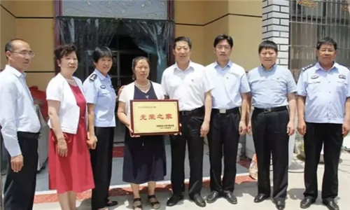 6月25日,河南省見義勇為基金會副理事長劉玉虎、秘書長鄭獻春一行來到鄲城縣見義勇為模范稱號的王軍生家中,劉玉虎親自將“光榮之家”的牌匾送到王軍生的愛人韓香手中。周口市公安局黨委委員、政治部主任郭冰,政治部副主任李亞鵬,基金會周口分會秘書長王鑫,鄲城縣委副書記、政法委書記崔衛(wèi)國,鄲城縣公安局政委趙紅建,鄲城縣公安局黨委委員、政工室主任李越,鄲城縣洺南辦事處書記張杰等參加了授牌。