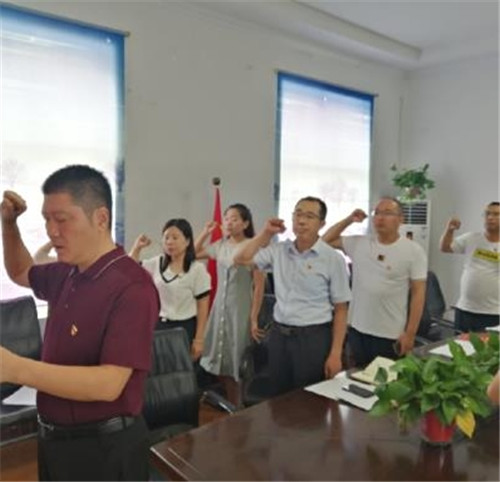 活動(dòng)還對聞榮玲、王偉兩名預(yù)備黨員轉(zhuǎn)為正式黨員進(jìn)行了審議、討論、表決;全體黨員面對黨旗,重溫了入黨誓詞;全體黨員還進(jìn)行了慶祝建黨98周年知識測試。
