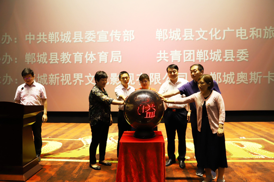 鄲城縣委宣傳部、鄲城縣文化廣電和旅游局、共青團(tuán)鄲城縣委、縣教體局等有關(guān)單位負(fù)責(zé)人,縣直各單位分管副職和代表,鄲城新視界文化影視有限公司員工共400余人參會,并共同觀影。