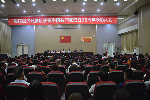 本報訊(記者 王泉林) 6月28日,開發(fā)區(qū)舉行慶祝中國共產(chǎn)黨成立98周年表彰大會。開發(fā)區(qū)黨委書記王文峰為開發(fā)區(qū)黨員干部上黨課,開發(fā)區(qū)管委會主任劉濤主持會議,領(lǐng)導(dǎo)班子成員谷靜、于杰、趙愚、王靜及太昊路公安分局政委劉振國出席會議。