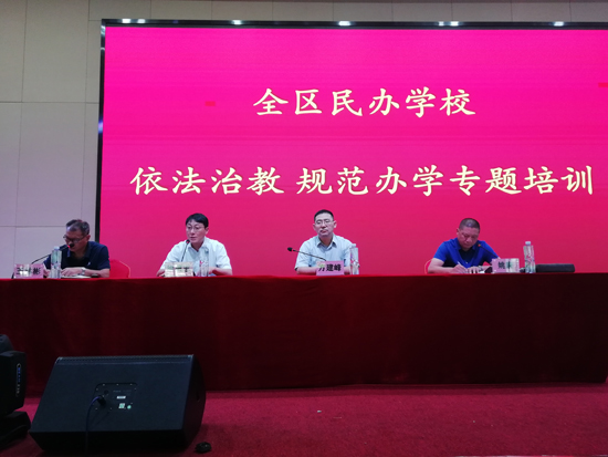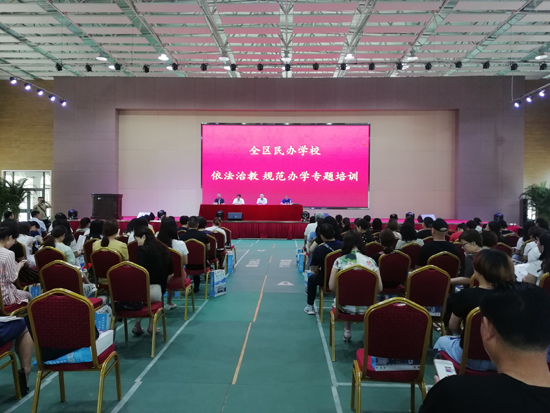 7月4日上午,川匯區(qū)民辦學?!耙婪ㄖ谓?規(guī)范辦學”專題培訓班在周口新星學校體育館多功能廳舉行。川匯區(qū)教體局黨組書記、局長徐德志致辭,培訓班由方建鋒博士主講。來自川匯區(qū)民辦中小學、幼兒園校(園)長等學校100余人參加培訓。